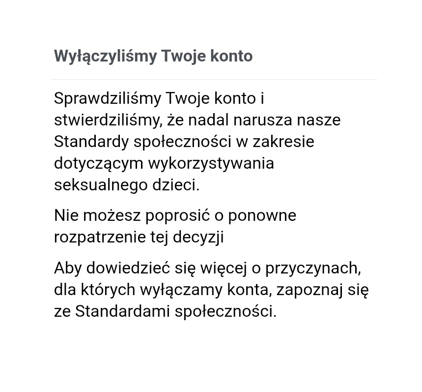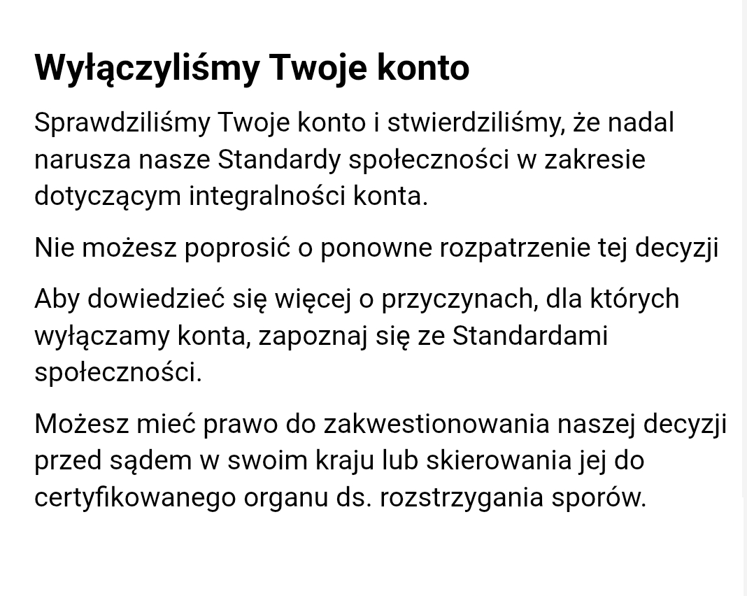 Jak została wskazana przyczyna utraty konta?